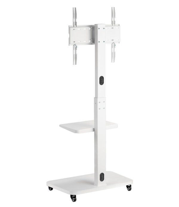 De Jebes verrijdbare TV standaard is zeer economisch geprijsd en is gemaakt van een solide stalen constructie en op basis van melamine gelamineerd hout, daarbij is de TV standaard in hoogte verstelbaar. De kabels zijn netjes weg te werken aan de achterkant van de TV standaard en is ook eenvoudig te monteren. U heeft de mogelijkheid om de AV plateau wel of niet te monteren